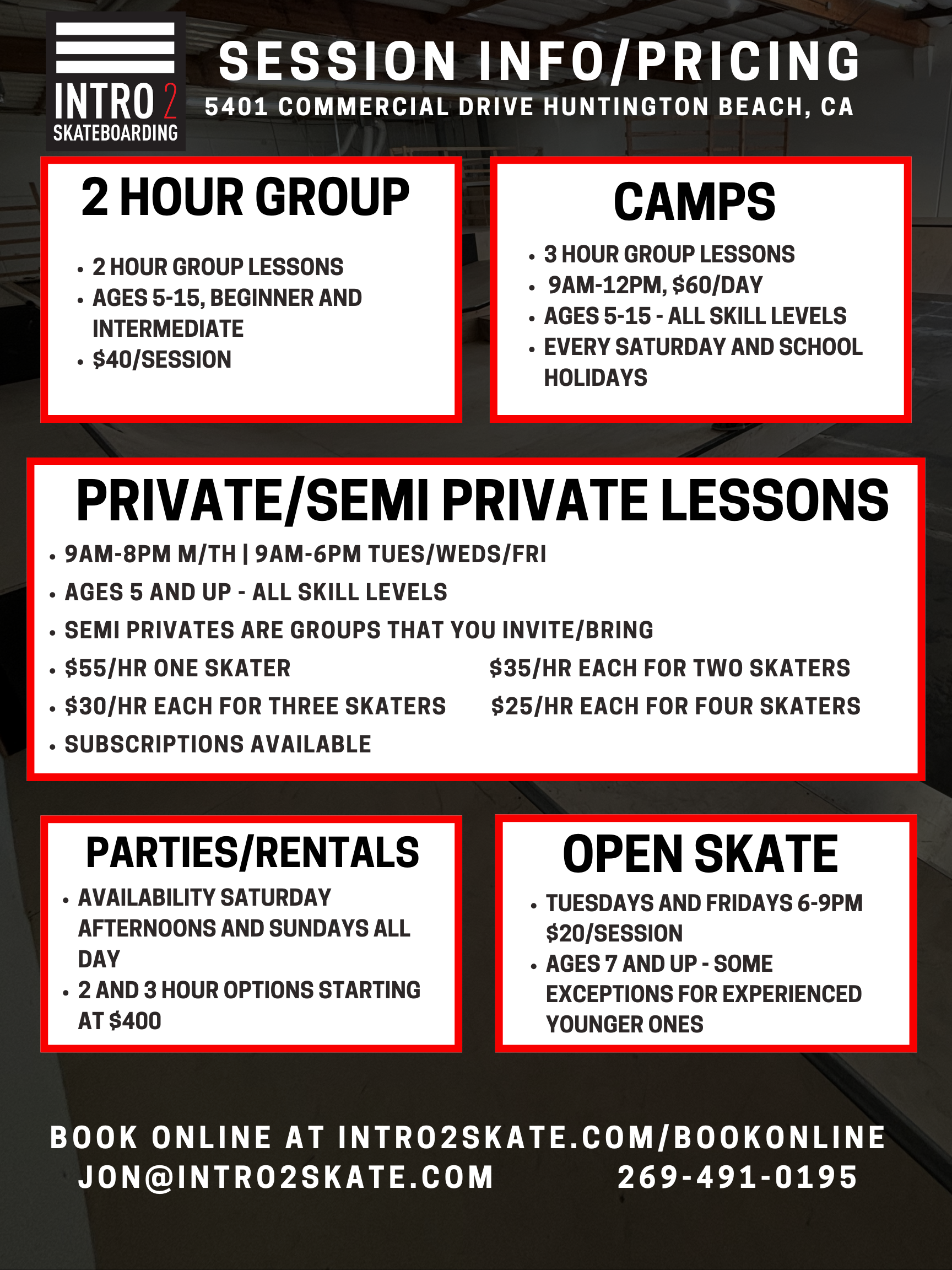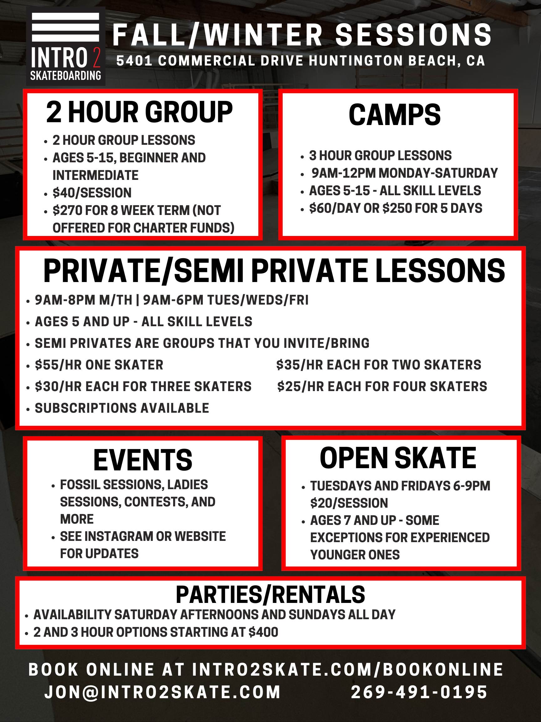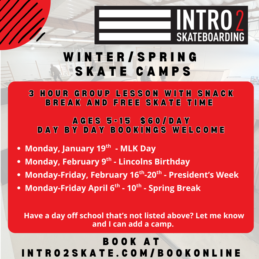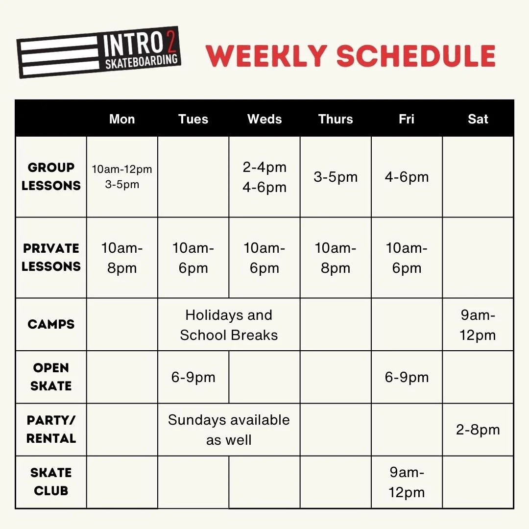 Here is our Fall schedule, some sessions are subject to change. Updates are posted frequently on our instagram @intro2skate.